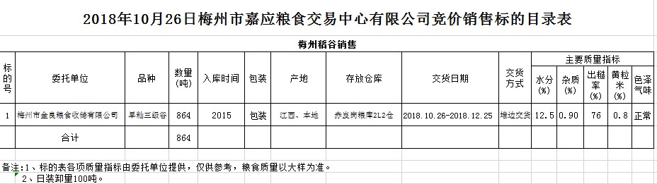 交易時(shí)間和地點(diǎn):2018年10月26日(星期五)上午10時(shí)15分。廣東省梅州市彬芳大道南161號梅州市糧食交易中心3樓。
