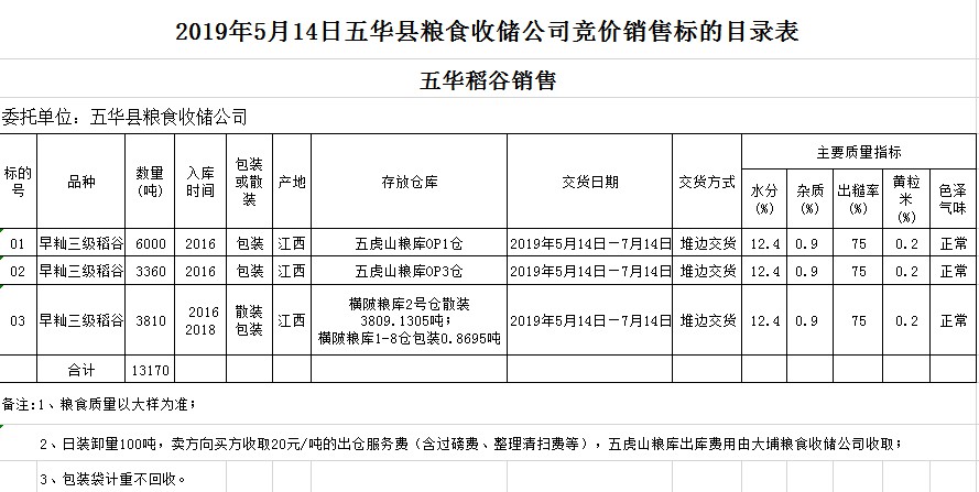 交易時(shí)間和地點(diǎn):2019年5月14日(星期二)上午10時(shí)。廣東省梅州市彬芳大道南161號(hào)梅州市糧食交易中心3樓。