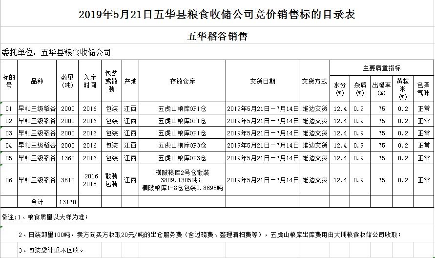 受客戶委托,梅州市嘉應糧食交易中心有限公司定于2019年5月21日(星期二)舉辦糧食競價交易會,廣東省五華縣糧食收儲公司擬銷售2016年早秈稻13169.1305噸,2018年早秈稻0.8695噸。