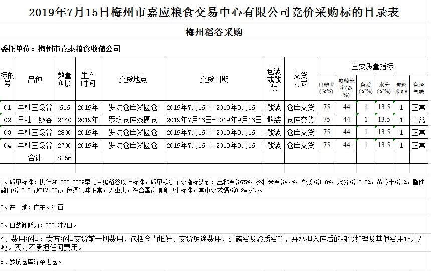 2019年7月15日梅州市嘉泰糧食收儲(chǔ)公司稻谷采購(gòu)