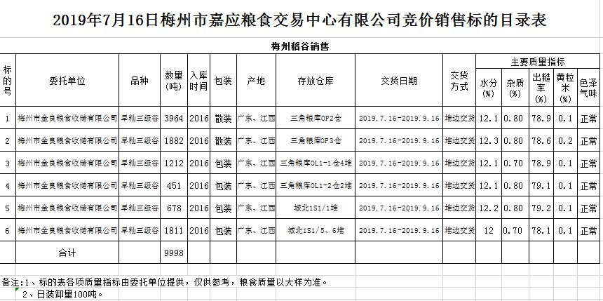 2019年7月16日梅州市金良糧食收儲有限公司稻谷銷售