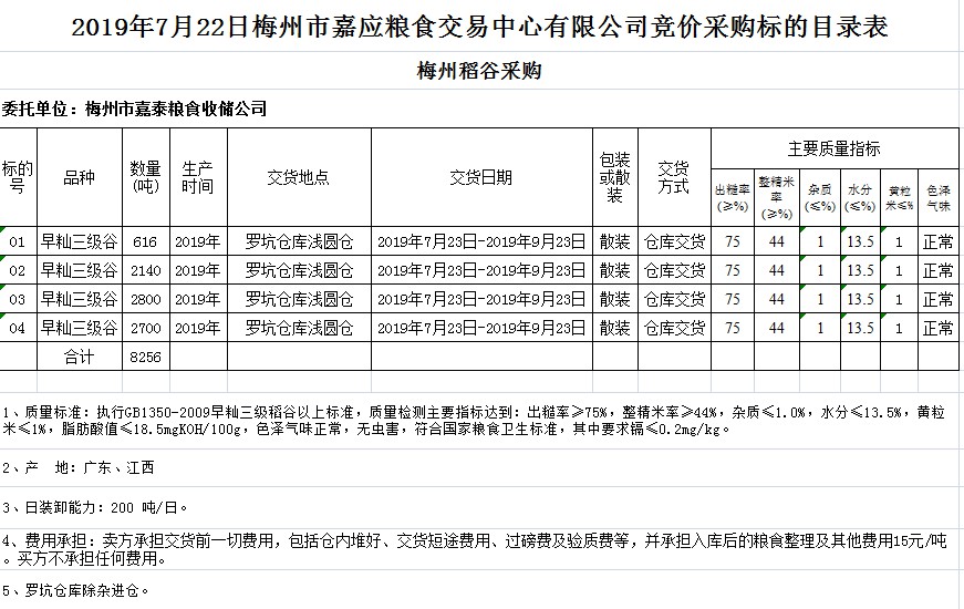 2019年7月22日梅州市嘉泰糧食收儲(chǔ)公司稻谷采購(gòu)