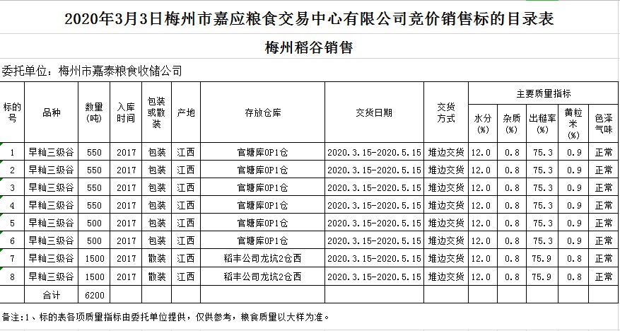 2020年3月3日梅州市嘉泰糧食收儲公司稻谷銷售