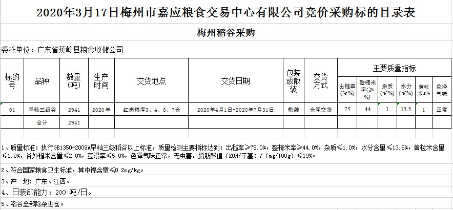 2020年3月17日廣東省蕉嶺縣糧食收儲(chǔ)公司稻谷采購(gòu)