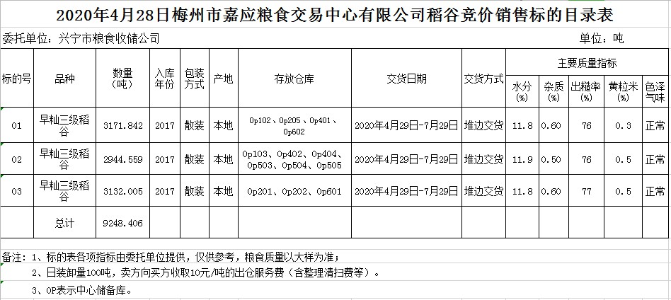 交易時(shí)間和地點(diǎn):20204月28日(星期二)上午10時(shí)。廣東省梅州市彬芳大道南161號(hào)梅州市糧食交易中心3樓。