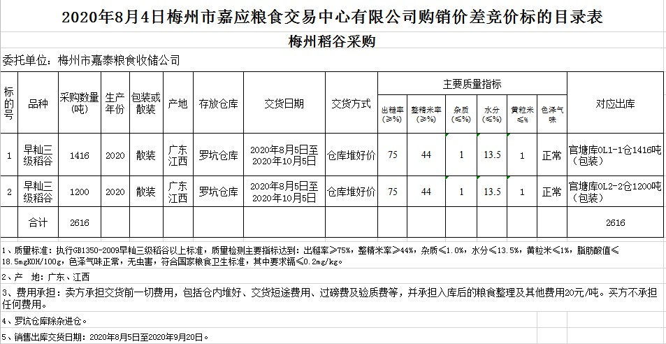 2020年8月4日梅州市嘉泰糧食收儲公司稻谷購銷價差聯(lián)動標(biāo)的交易會