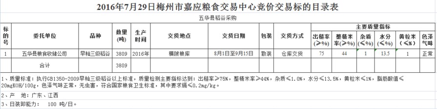 2016年7月29日廣東省五華縣糧食收儲(chǔ)公司稻谷采購(gòu)
