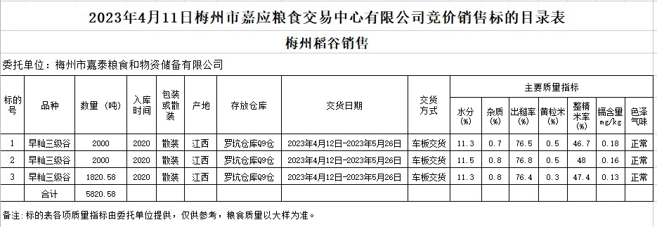 2023年4月11日梅州市嘉泰糧食和物資儲備有限公司稻谷銷售