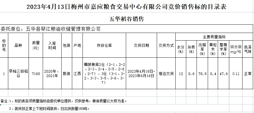 文件下載:2023年4月13日五華縣琴江糧油收儲管理有限公司稻谷銷售