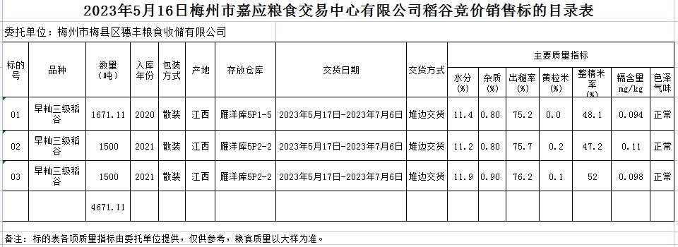 2023年5月16日梅州市梅縣區(qū)穗豐糧食收儲(chǔ)有限公司稻谷銷售