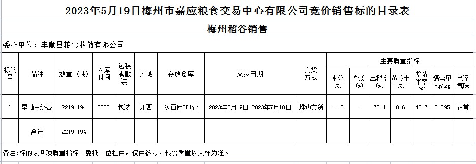 受客戶委托,梅州市嘉應(yīng)糧食交易中心有限公司定于2023年5月19日(星期五)舉辦糧食競價交易會。豐順縣糧食收儲有限公司擬銷售2020年早秈稻2219.194噸。