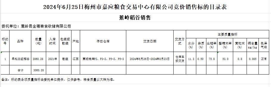 2024年6月25日蕉嶺縣金穗糧食收儲有限公司稻谷銷售