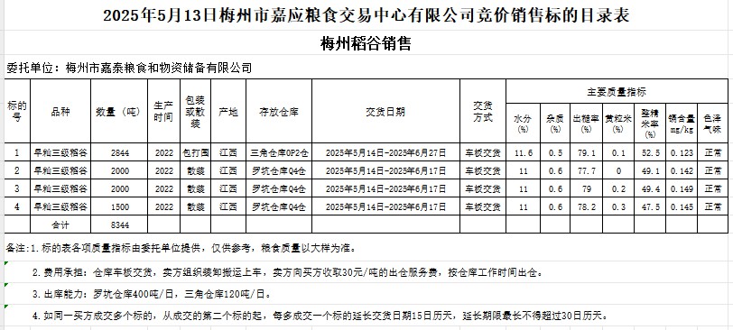 2025年5月13日梅州市嘉泰糧食和物資儲(chǔ)備有限公司稻谷銷售