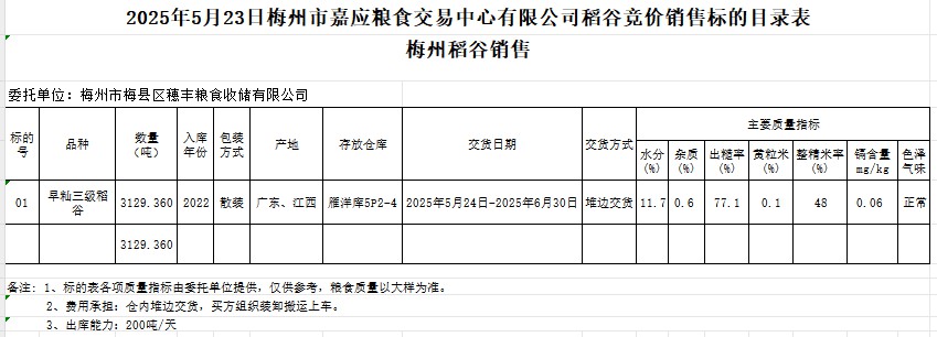 2025年5月23日梅州市梅縣區(qū)穗豐糧食收儲(chǔ)有限公司稻谷銷售