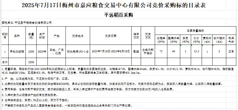 2025年7月17日平遠(yuǎn)縣平糧糧食收儲(chǔ)有限公司稻谷采購