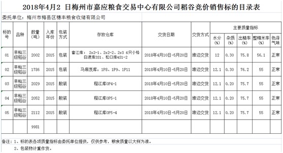文件下載:2018年4月9日梅州市梅縣區(qū)穗豐糧食收儲有限公司稻谷銷售