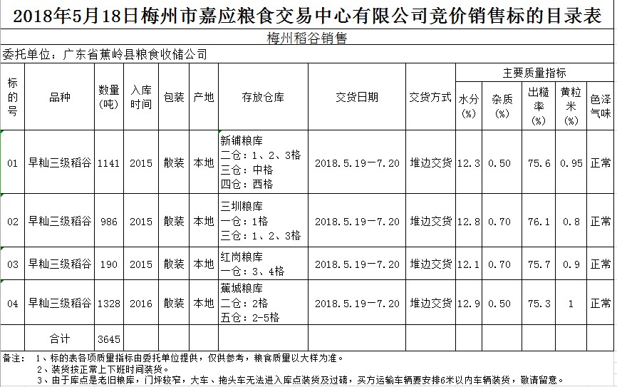 2018年5月18日廣東省蕉嶺縣糧食收儲(chǔ)公司稻谷銷售